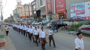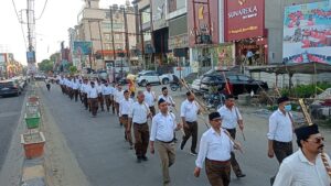 काशीपुर । संघ के शताब्दी वर्ष कार्यक्रम के तहत मोटेश्वर महादेव उपनगर, महर्षि बाल्मीकि उपनगर, गुरु गोविंद सिंह उपनगर समेत भरतपुर बांसखेड़ा तथा कुंडेश्वरी ग्रामीण मंडलों के राष्ट्रीय स्वयंसेवकों ने वर्ष प्रतिपदा के उपलक्ष्य में नगर और ग्रामीण क्षेत्रों के विभिन्न मार्गों पर पथ संचलन किया। नगर के महर्षि बाल्मीकि और गुरु गोविंद सिंह उपनगर के स्वयं सेवक बड़ी संख्या में रामलीला मैदान में एकत्रित हुए। जहां से बौद्धिक सत्र के उपरांत संघ की परम्परा के अनुसार पथ संचलन का कार्य शुभारंभ हुआ ।पथ संचलन रामनगर रोड होते हुए,कटोराताल, माता मंदिर रोड रतन सिनेमा रोड डाक्टर लाइन मुख्य बाजार तथा महाराणा प्रताप चौराहे होते रामलीला मैदान में संपन्न हुआ। उधर मोटेश्वर महादेव उपनगर के स्वयं सेवकों ने रामपुरम कालोनी स्थित अटल पार्क में एकत्र होकर पथ संचलन में भाग लिया। साथ ही ग्रामीण मंडलों में भी जगह जगह पथ संचलन के कार्य आयोजित किए गए। सभी जगह बौद्धिक सत्र के दौरान मुख्य वक्ताओं ने संघ के सौ वर्षों के इतिहास और उपलब्धियों की जानकारी देते हुए समग्र हिंदू समाज को संगठित और एकजुट होने पर विशेष जोर दिया। इसके साथ ही वक्ताओं ने पंच परिवर्तन के तहत सामाजिक समरसता कुटुंब प्रबोधन,स्वदेशी, पर्यावरण संरक्षण समेत कई बिंदुओं पर प्रकाश डाला। वहीं वक्ताओं ने नव संवत्सर पर बोलते हुए अपनी चिर पुरातन संस्कृति पर गौरवान्वित होने पर हर्ष व्यक्त किया।इस दौरान मुख्य वक्ता अखिल भारतीय संयोजक मंच कला देवेन्द्र रावत नैनीताल विभाग मार्ग प्रमुख खीम सिंह सेम्फोर्ड पब्लिक स्कूल प्रतापपुर आशुतोष संघ संचालक अमित मित्तल समेत स्वयं सेवक मौजूद रहे।