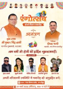 काशीपुर। नगर निगम प्रांगण में कल रविवार, 1 मार्च को (रंगोत्सव) होली मिलन समारोह मनाया जाएगा, जिसके मुख्य अतिथि प्रदेश के मुख्यमंत्री पुष्कर सिंह धामी होंगे। आयोजन की तैयारियां जोर-शोर से की जा रही हैं। नगर निगम महापौर दीपक बाली ने आज दोपहर कार्यक्रम स्थल का निरीक्षण किया। काशीपुर के इतिहास में यह अपने आप में पहला कार्यक्रम होगा जिसमें मुख्यमंत्री आम जनता के बीच मौजूद रहकर काफी समय तक होली मिलन कार्यक्रम में प्रतिभाग करेंगें। यह कार्यक्रम महापौर दीपक बाली द्वारा किया जा रहा है।
